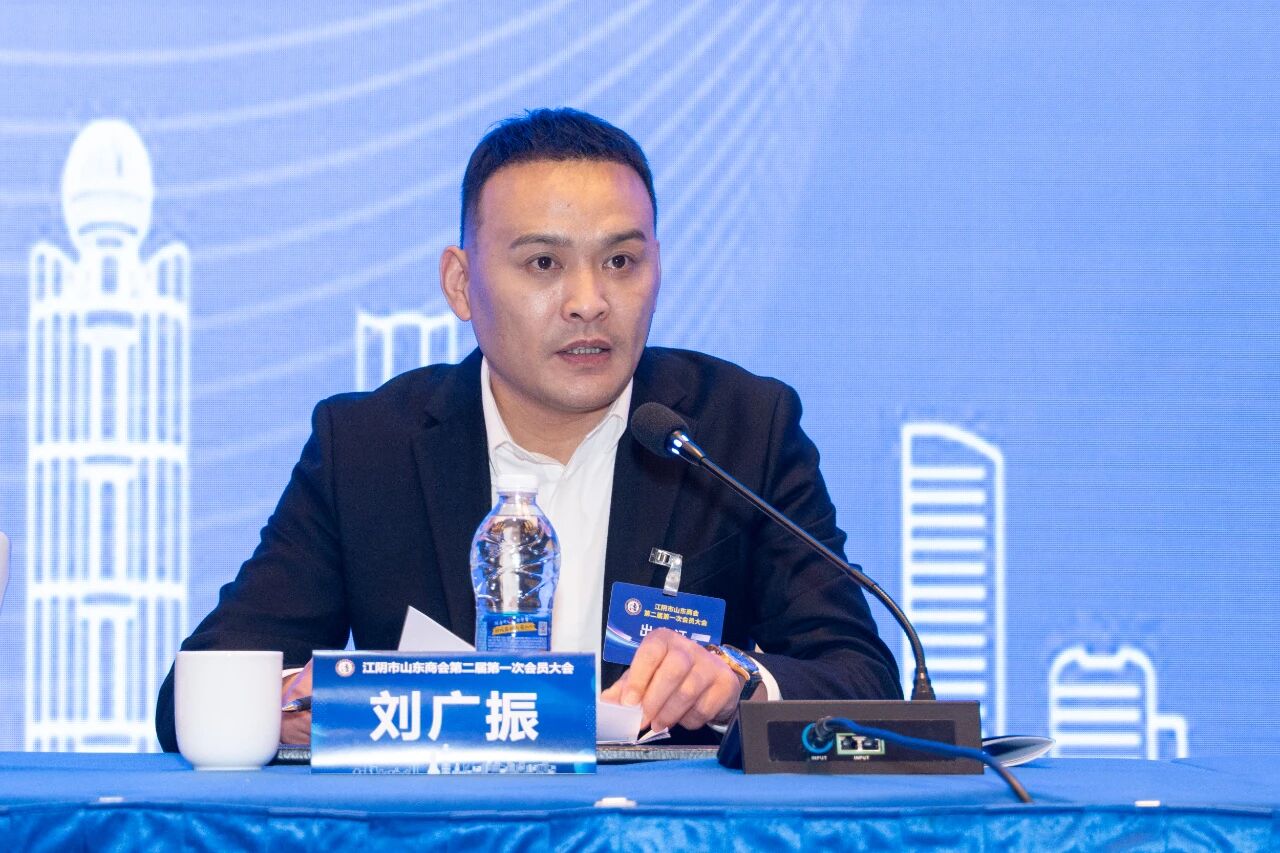 当选江阴市山东商会第二届理事会会长刘广振作表态发言。