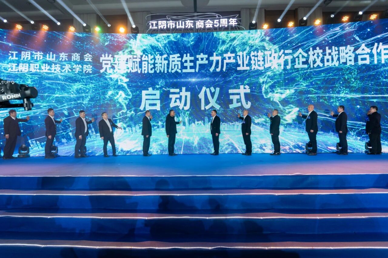 活动期间,还举行了江阴市山东商会、江阴职业技术学院党建赋能新质生产力产业链政行企校战略合作启动仪式。