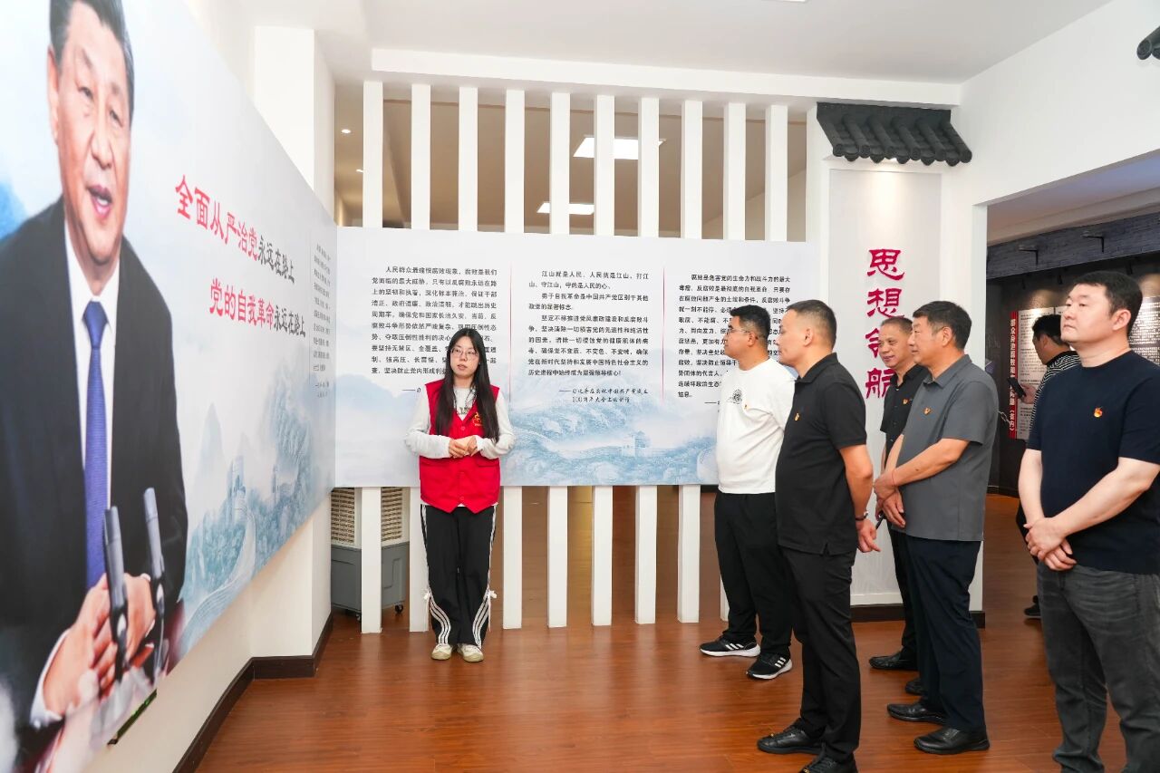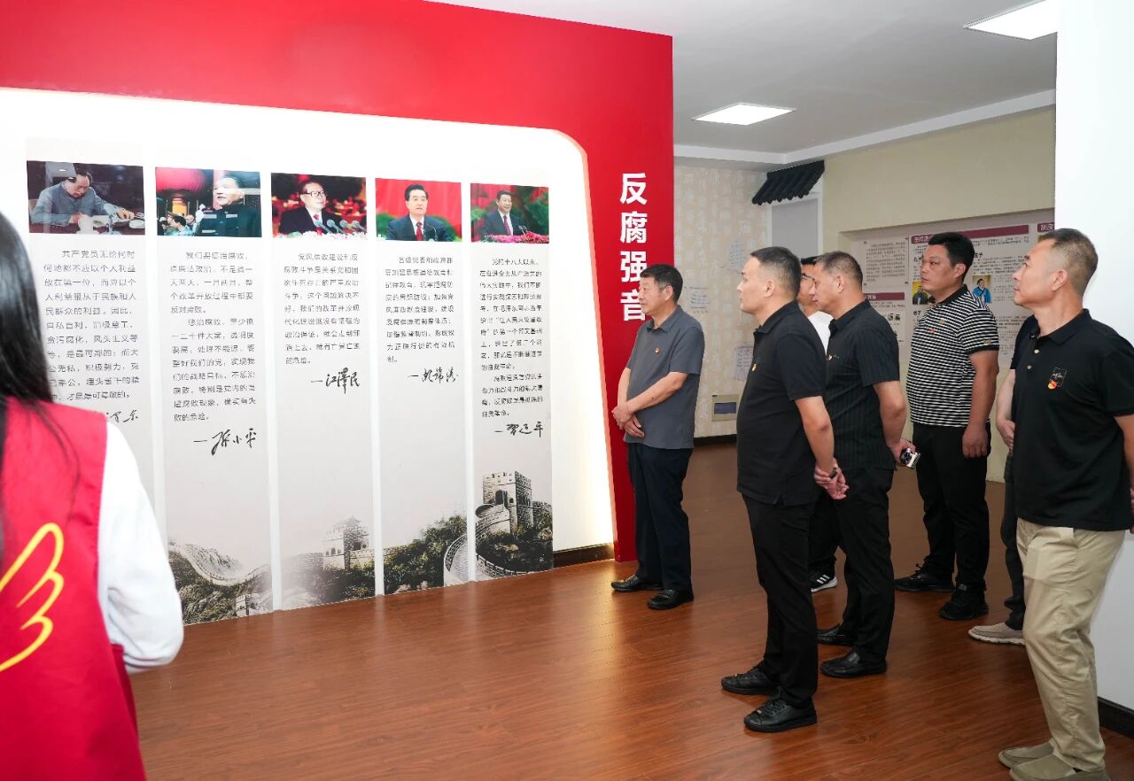 五大主题深化教育成效。在讲解员的引导下,商会全体党员依次参观"廉文、廉规、廉警、廉醒、廉诺"主题展区:廉文区通过范仲淹、于成龙等历史先贤的廉政故事,教育党员传承"清正廉洁"的文化基因;廉规区系统展示《中国共产党纪律处分条例》等党内法规,树牢党员纪律红线意识;廉警区以近年来查处的12起典型腐败案例为镜鉴,揭示"贪廉一念间,荣辱两重天"的深刻教训;廉醒区通过情景模拟装置,剖析腐败分子心理蜕变过程,警示党员干部慎初、慎微;廉诺区,全体党员面对党旗重温入党誓词,坚定拒腐防变决心。